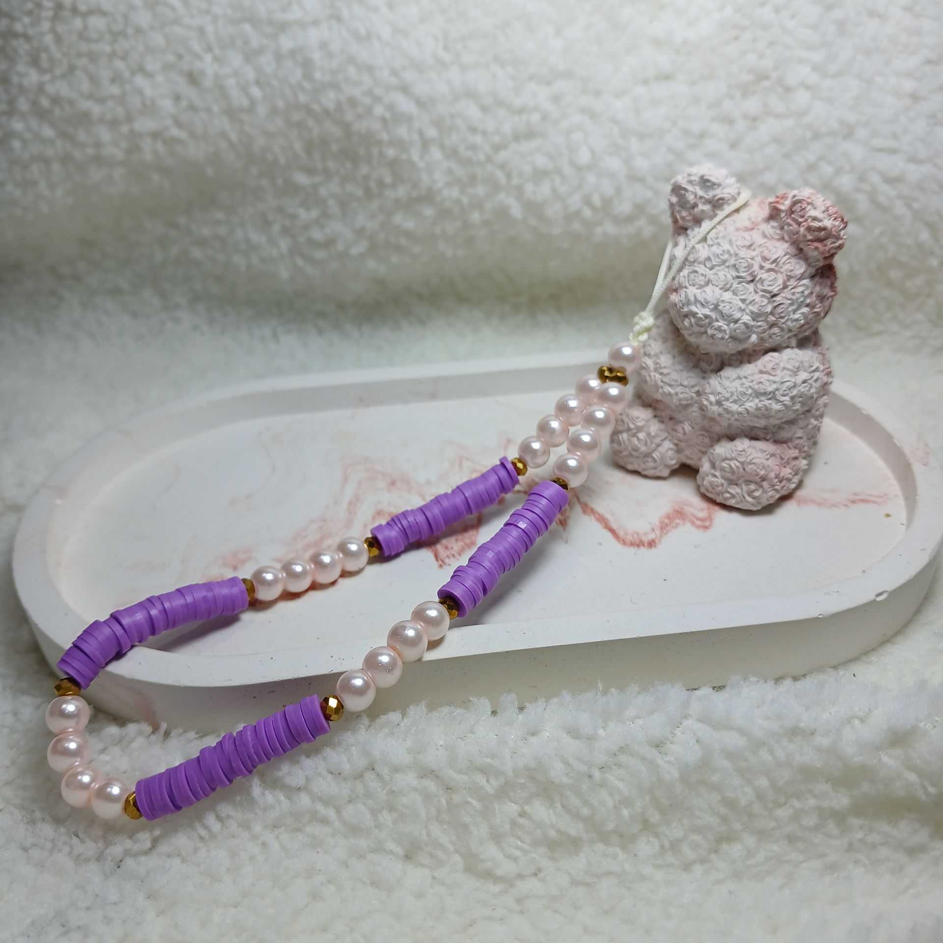 اگر به دنبال یک بند گوشی خاص، متفاوت و چشم نواز هستید، بند گوشی مدل پریماه دقیقاً همان چیزی ست که به استایل مینیمال و منحصر به فرد شما جان تازه ای می بخشد. ترکیب دلنشین مهره های مرواریدی براق با مهره های فیمویی بنفش، جلوه ای دخترانه، ظریف و در عین حال پرانرژی به این بند آویز گوشی بخشیده است. مهره های طلایی ریز، با درخشش ملایم خود، چاشنی لوکس این اکسسوری جذاب را کامل می کنند.