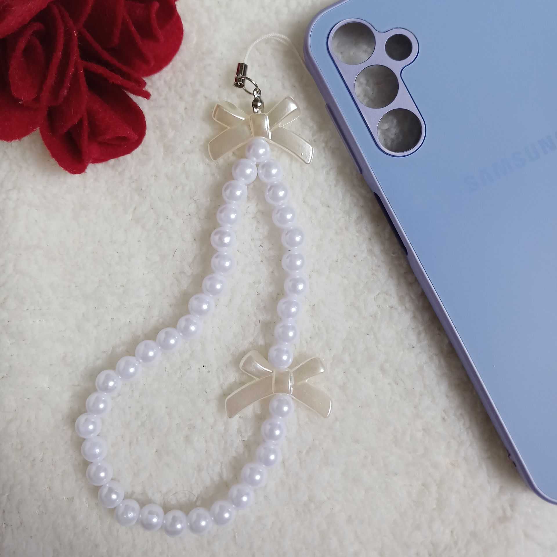 درخشش لطیف مروارید ها در کنار پاپیون های جذاب، حسی از لطافت را به گوشی شما اضافه می کند. اگر از طرفداران اکسسوری های خاص و دخترانه هستید، این بند گوشی مرواریدی انتخابی عالی برای شماست تا هم از گوشی در برابر افتادن محافظت کنید و هم استایلی چشم نواز و متفاوت داشته باشید. با بند گوشی مرواریدی رویا، هر روز رویاهایت را به دست بگیر!